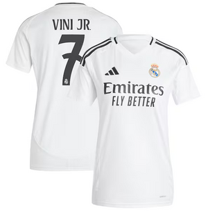 Celebrate the rise of a new Galáctico with the official Vinícius Jr. Real Madrid jersey. Featuring the iconic all-white design of Los Blancos, this jersey showcases Vinícius Jr.’s name and number (typically #7) on the back — honoring his explosive pace, dazzling footwork, and game-changing goals. Crafted from high-performance, breathable fabric with sweat-wicking technology, it delivers elite-level comfort on and off the pitch. With the Real Madrid crest and authentic sponsor logos, this jersey is perfect for fans who want to represent one of the brightest young stars in world football. A must-have for every true Madridista.